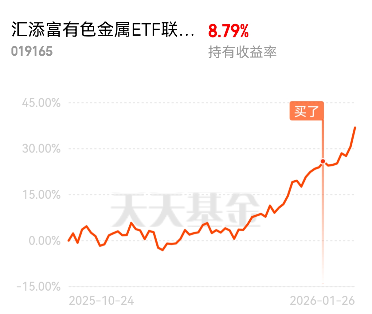 最重要的是,金和铜这两类金属供应紧张很有可能会持续很久,而汇添富的这家“金、铜”含量高达46%,正好切中我的思路,所以我小欧拿稳了。