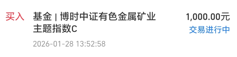 今天我买入$博时中证有色金属矿业主题指数C(OTCFUND|018133)$1000块钱。