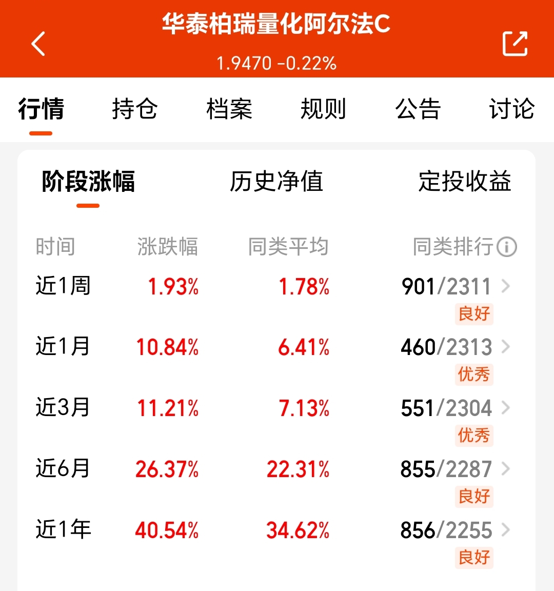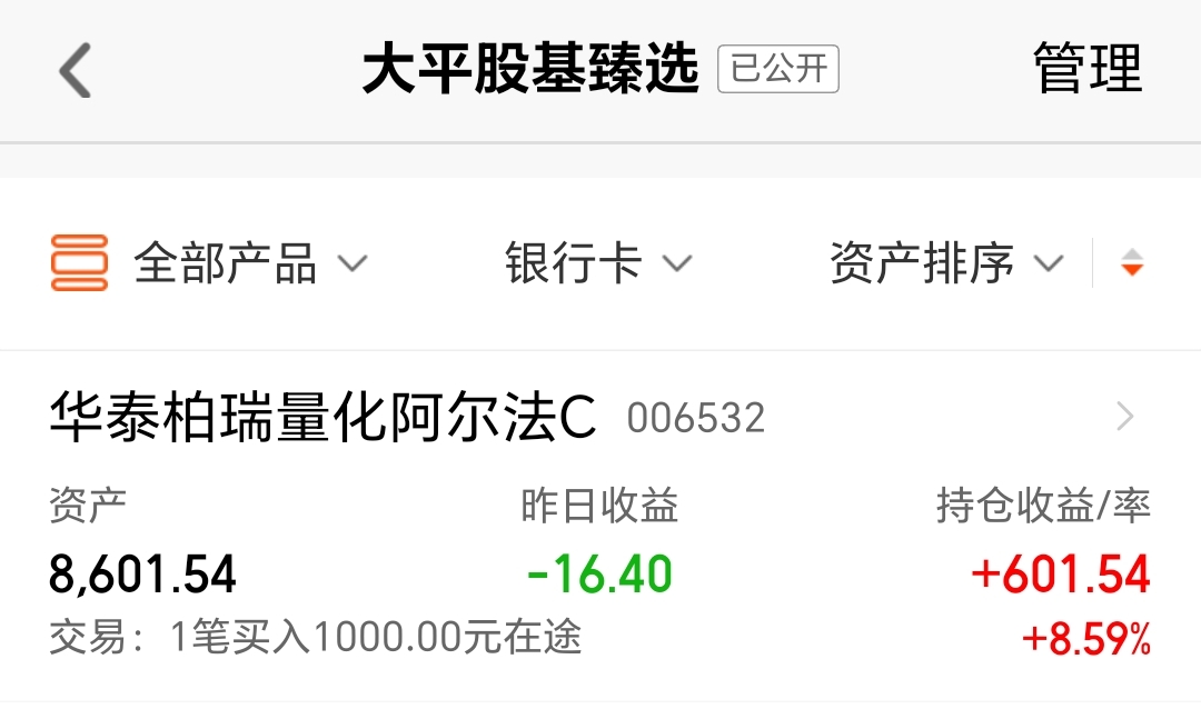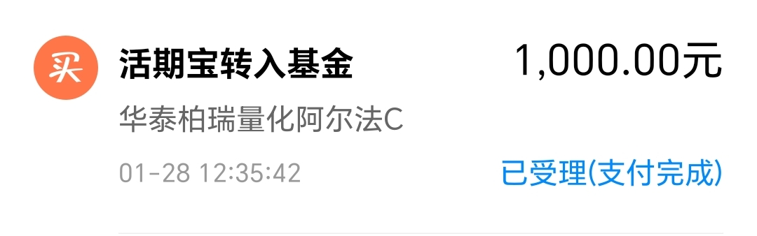 今天我买入$华泰柏瑞量化阿尔法C(OTCFUND|006532)$1000块钱。