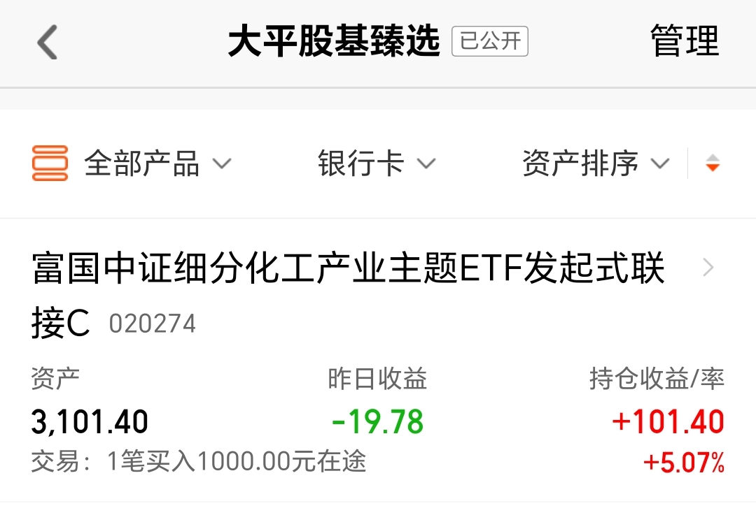 这个基金精准跟踪细分化工板块走势,我看好化工周期机会,今天我继续定投加仓。