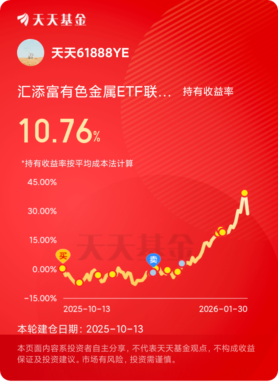 看好目前的后市行情,也已经跟着有色金属赛道的$汇添富有色金属ETF联接C$建仓了