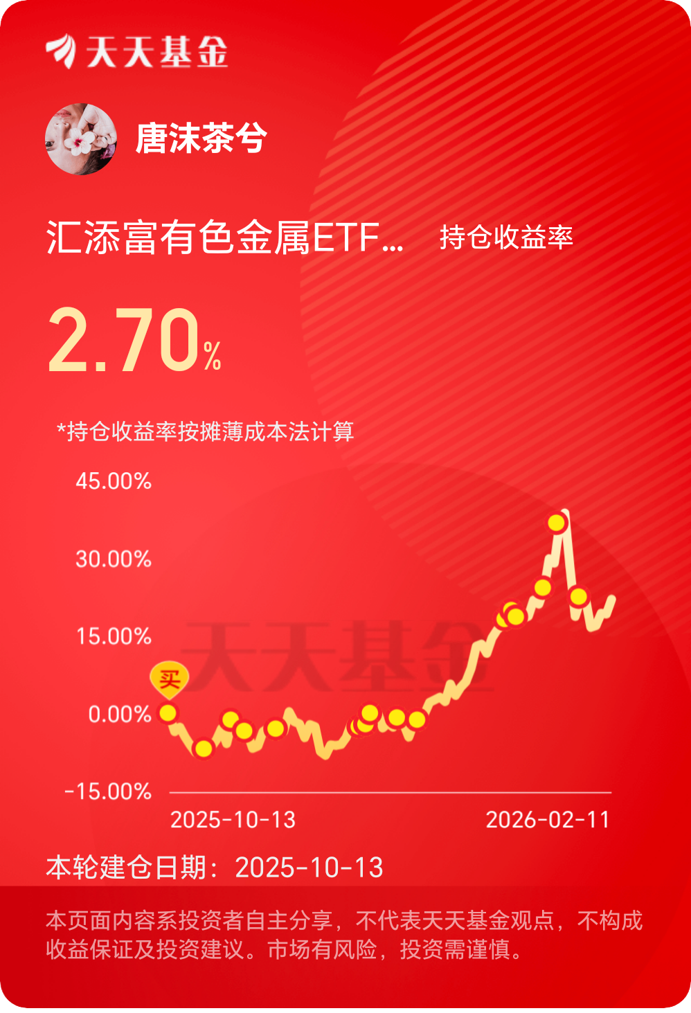 这轮有色周期不一样,是逆全球化下的安全逻辑驱动,AI电力和能源需求都是实打实的,行情还没完。$汇添富有色金属ETF联接C$ #晒收益#