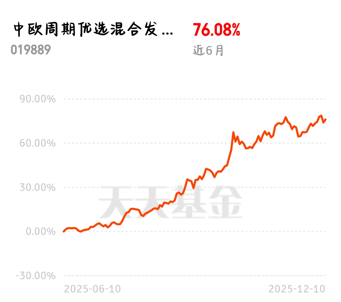 全球流动性宽松预期越来越强,贵金属、工业金属都被带动,周期资源板块热度上涨。中欧周期优选混合发起 C 近 3 个月 29.95%,同类主动基金里业绩靠前,短期布局正合适。$中欧周期优选混合发起C$