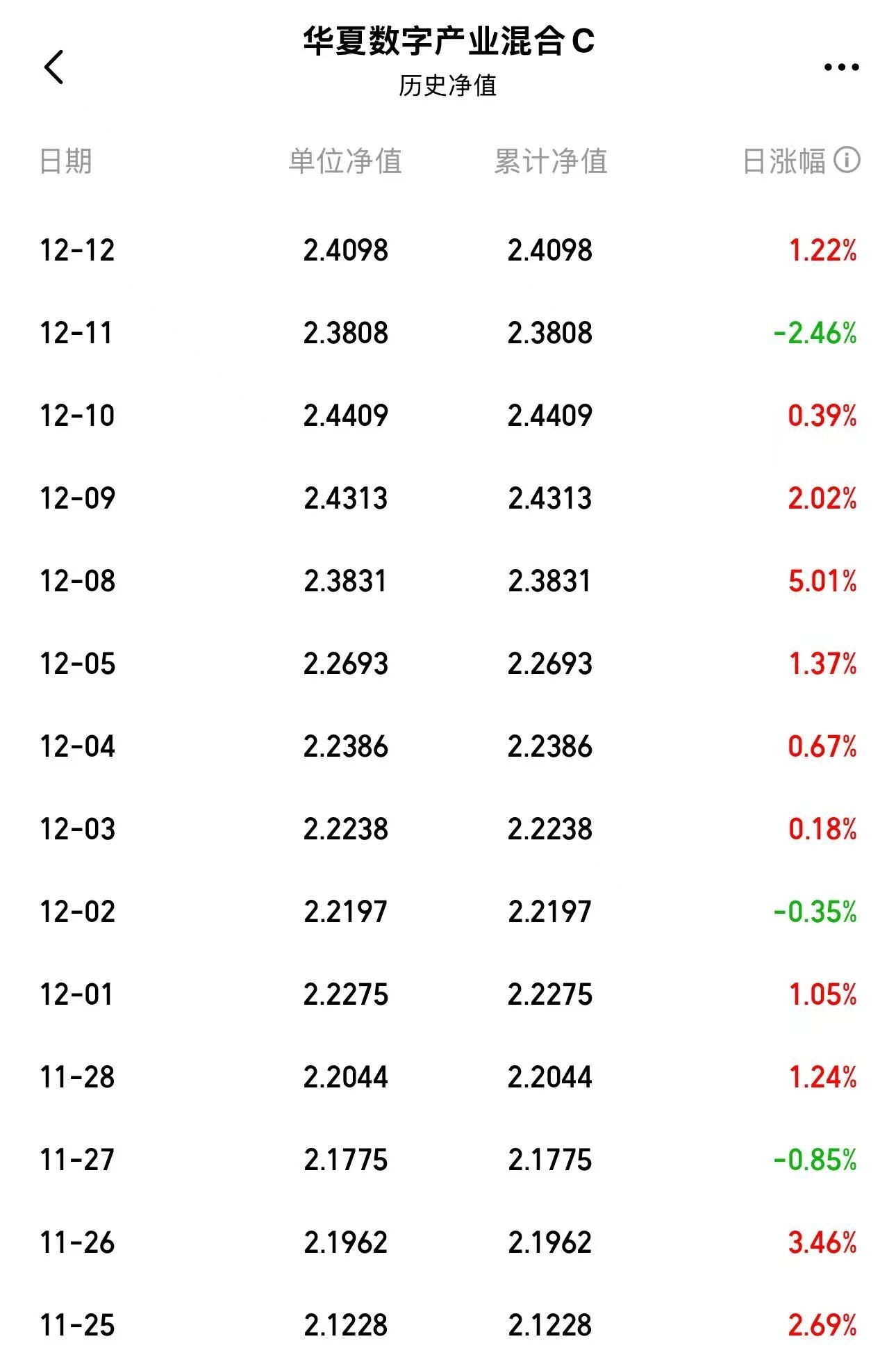 近六个月收益100%+,最近半个月收益收红居多持续性不错,随着“十五五”规划细节的逐步明朗,相信$华夏数字产业混合C$收益会更好,现在整体市场都在回调,找机会低吸