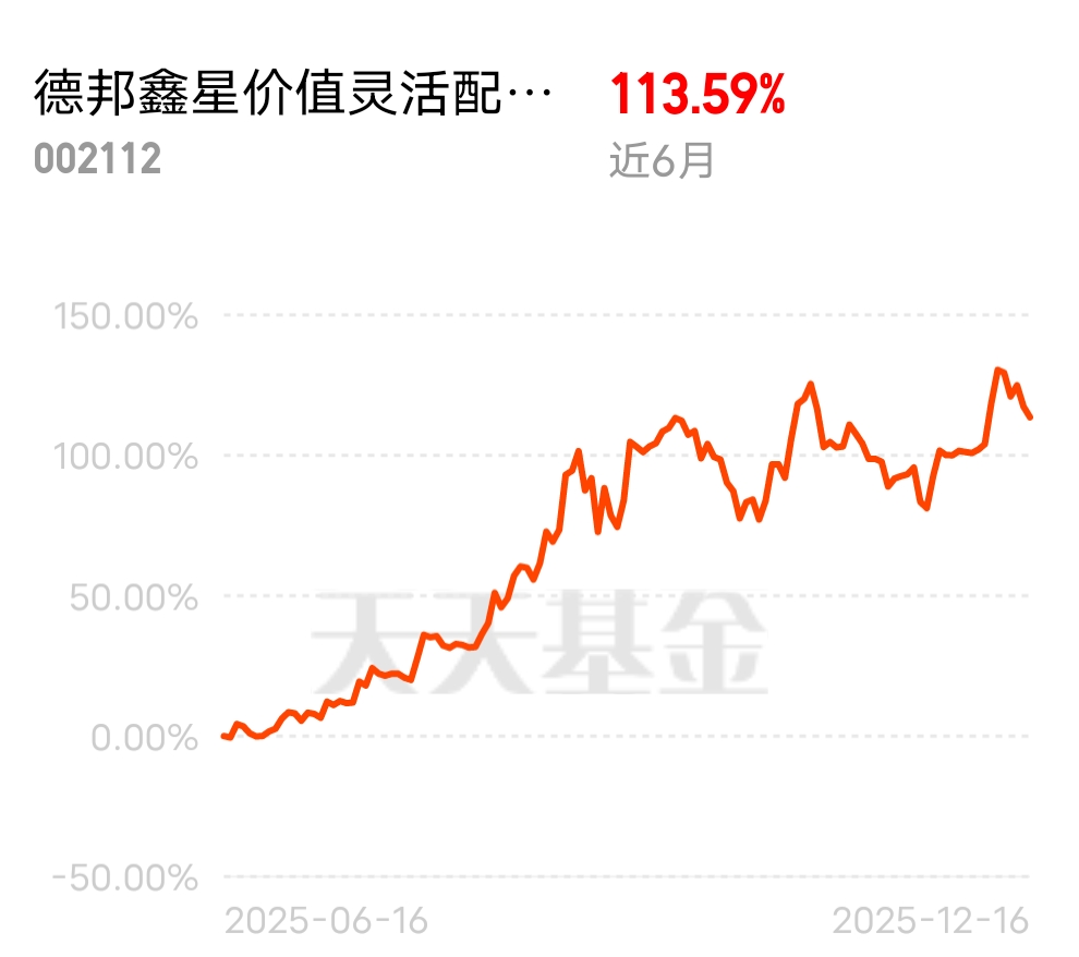 科技产业链持续发力,相关基金收益领跑市场。$德邦鑫星价值灵活配置混合C$ 近 6 月收益 113.59%,实力超群。cpo 太猛了,今天鑫星又是 4% 的涨度,还好我昨天加仓了,跟着产业链吃肉!