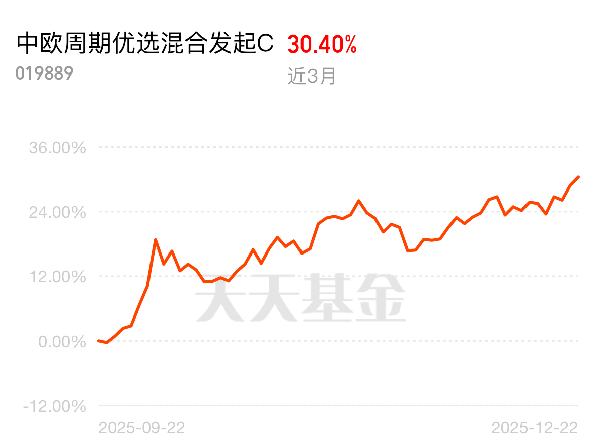 伦敦现货白银突破 60 美元,黄金创历史新高,震荡市比科技股稳的还是周期资源。$中欧周期优选混合发起C$ 近 3 个月 30.40%,多个区间跑赢同类,持仓质量在同类里属上乘。