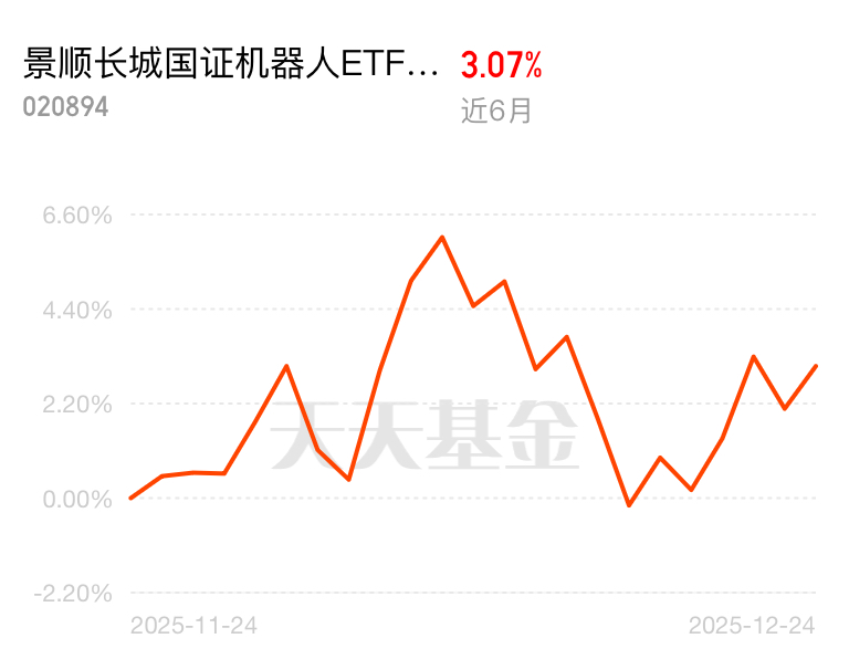 人形机器人成本下降 42%,商业化门槛降低,赛道今天火力全开期待值拉满。景顺长城国证机器人 ETF 联接 C 近 6 月 13.66%,当前位置仍处低位,后续行情值得布局,7 免优势突出,想加仓的可以行动了。