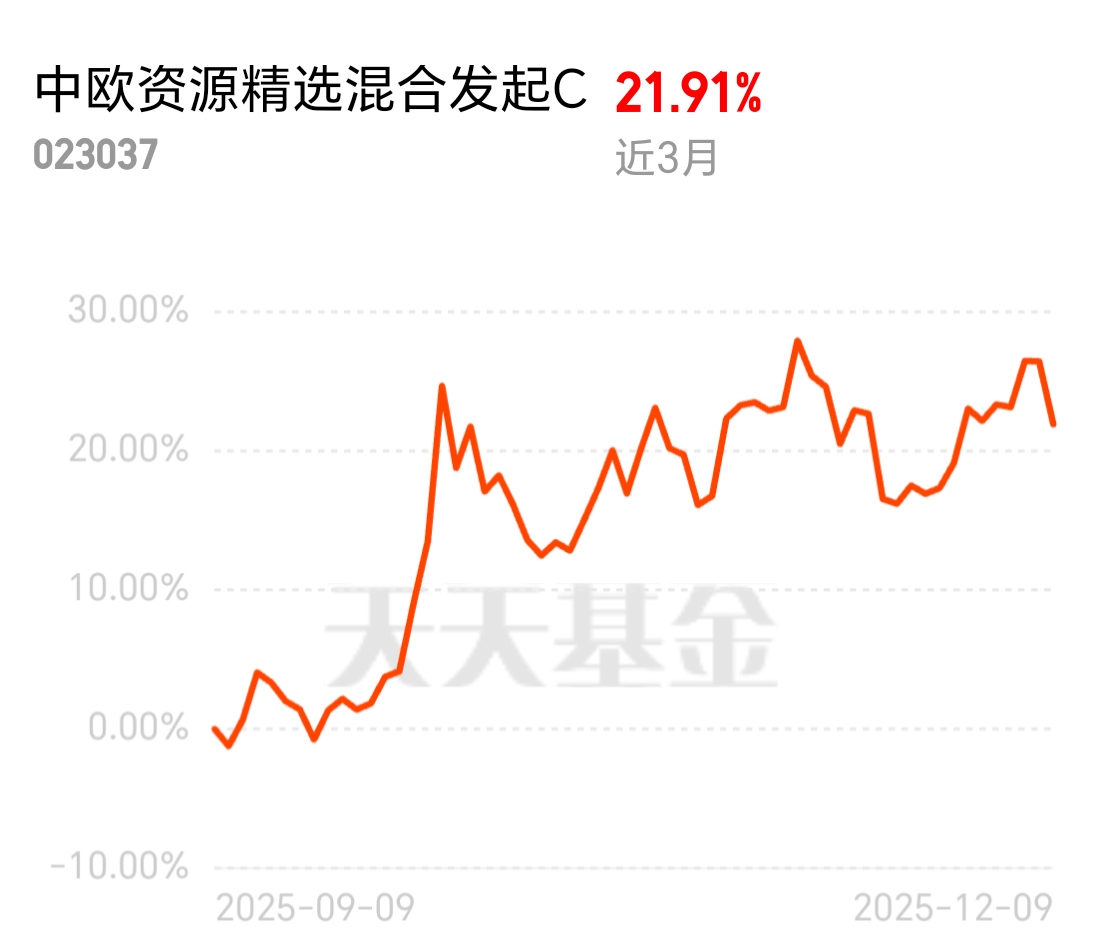 10 号美联储要公布利率决议,市场都盼着降息 25 基点,大宗商品提前预热。中欧资源精选混合发起 C 近 3 个月 21.91%,短期布局提前卡位,把握上涨先机。