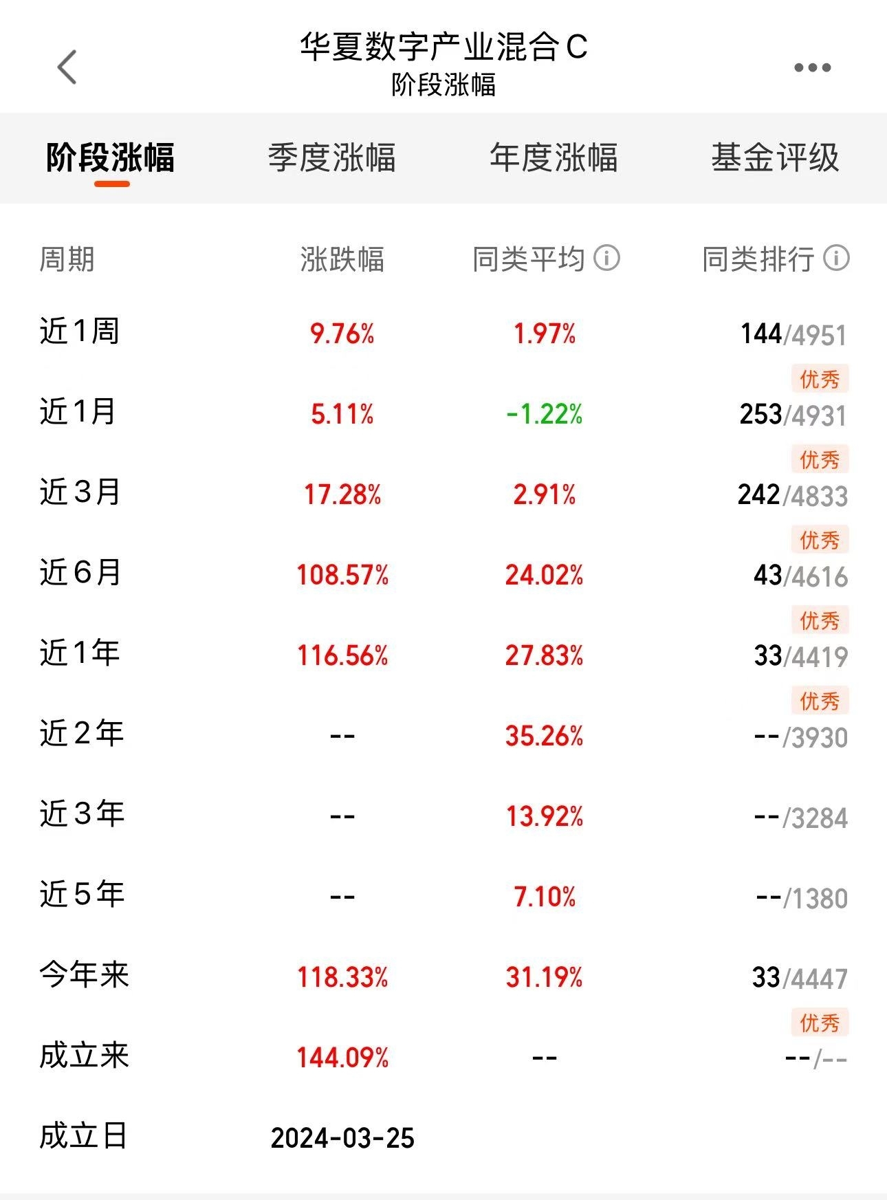 市场震荡期间,这里近1周收益还能9%+,连红6天,收益持续性也不错,$华夏数字产
