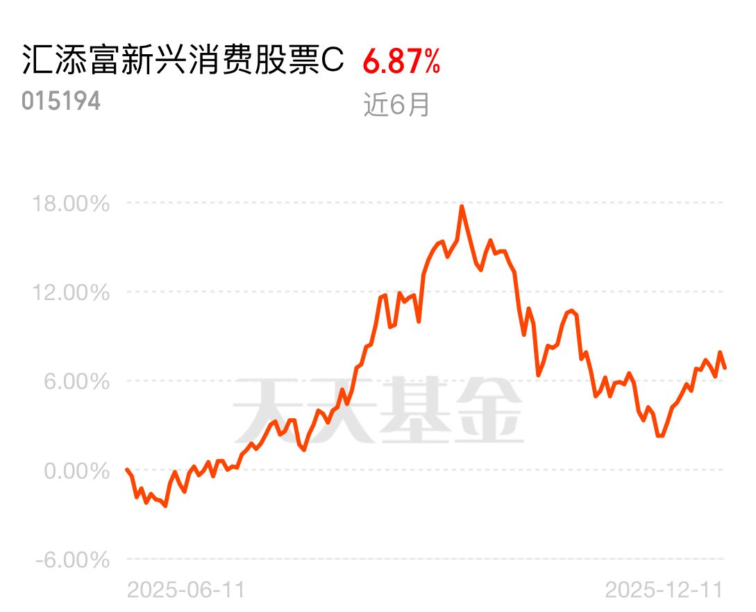 年末资金抢筹消费板块,政策红利持续释放!汇添富新兴消费 C 近 6 个月涨 6.87%,基金经理每周灵活调整定投金额,实盘操作有参考,闭眼入不慌。$汇添富新兴消费股票A$