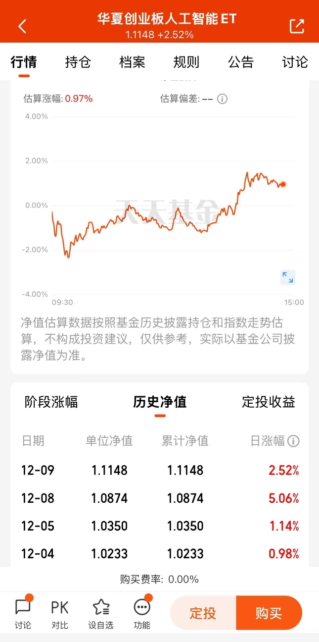 连红4天,今天继续上扬,$华夏创业板人工智能ETF发起式联接C$增收能力好,业绩