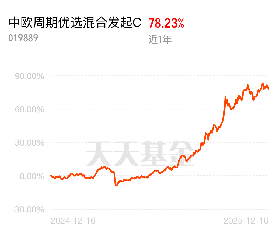 刚果对钴生产干预稳价,储能需求让锂价回升,新能源金属需求持续涨。中欧周期优选混合发起 C 精准布局这些赛道,近 1 年 78.23% 业绩能打,既享短期价格上涨,又赚长期趋势红利。$中欧周期优选混合发起C$