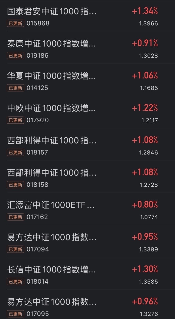 $国泰君安中证1000指数增强C$ 上涨1.34%