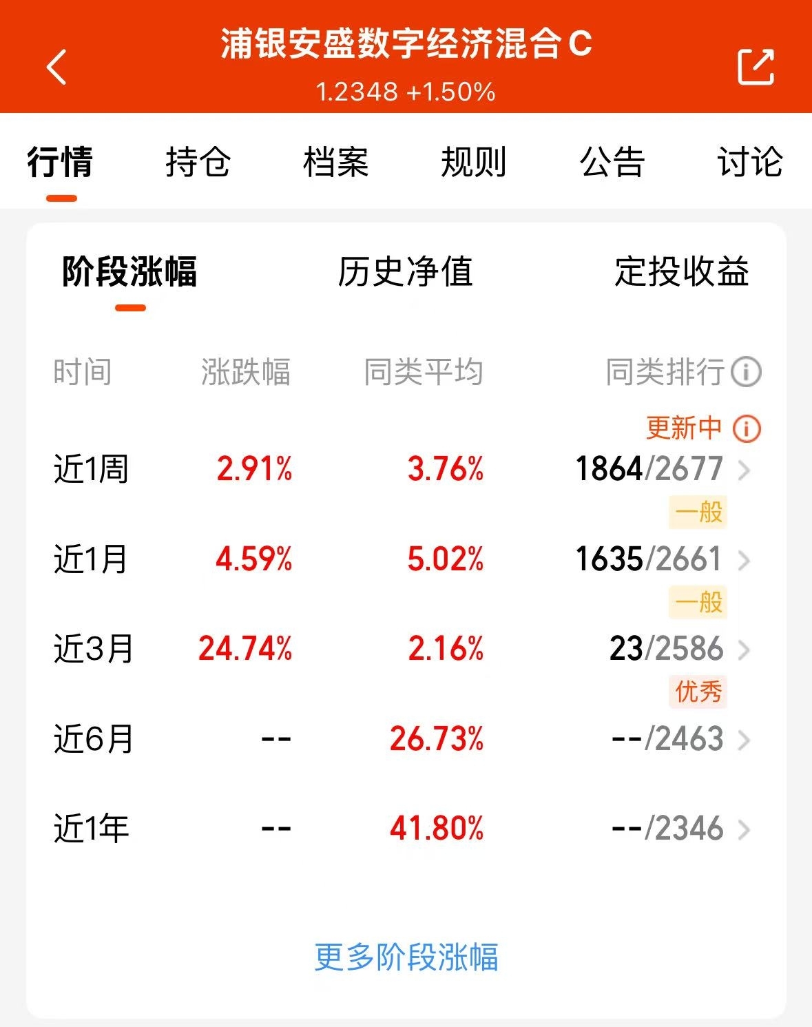 浦银安盛数字经济这个CPO新晋黑马,今天继续涨1.5%!要是遇到调整时机就加,主