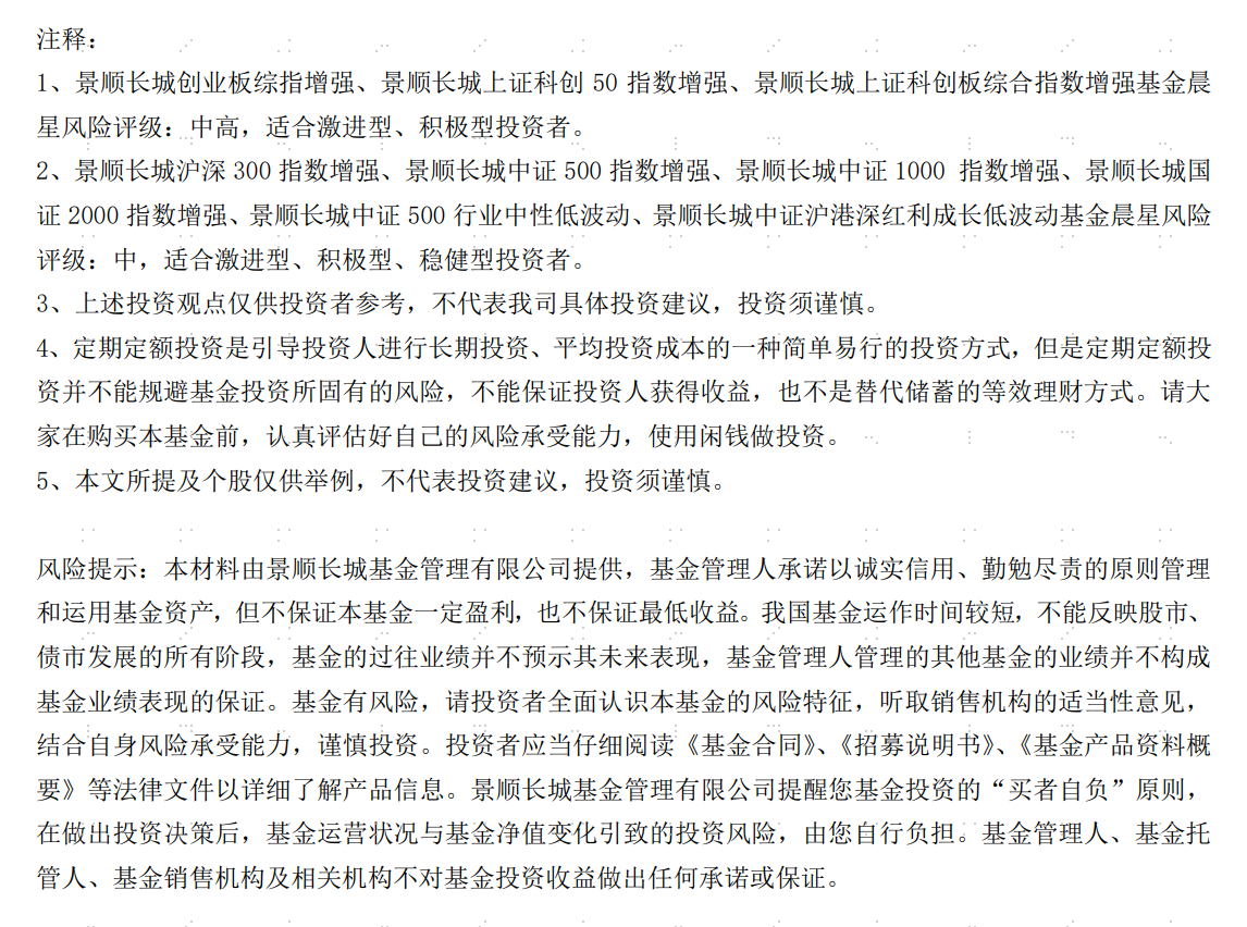 创业板综指作为创业板市场的全样本指数,相比创业板指(精选100只样本股)而言覆盖面更广,囊括所有创业板股票,不仅纳入创业板龙头,也兼顾一大批潜在成长空间较大的创业板中小盘,呈现出更高弹性的特征;板块轮动时有助于更好捕捉行情,加上成分股的业绩分化较大,机构覆盖度较低,有助于量化策略创造超越指数的收益。投资标的上欢迎关注$景顺长城创业板综指增强A(OTCFUND|008072)$、$景顺长城创业板综指增强C(OTCFUND|019239)$。