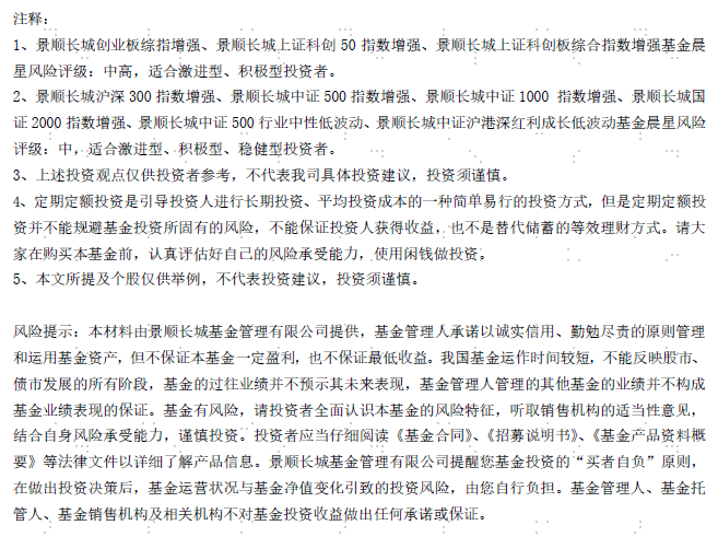 创业板综指作为创业板市场的全样本指数,相比创业板指(精选100只样本股)而言覆盖面更广,囊括所有创业板股票,不仅纳入创业板龙头,也兼顾一大批潜在成长空间较大的创业板中小盘,呈现出更高弹性的特征;板块轮动时有助于更好捕捉行情,加上成分股的业绩分化较大,机构覆盖度较低,有助于量化策略创造超越指数的收益。投资标的上欢迎关注$景顺长城创业板综指增强A(OTCFUND|008072)$、$景顺长城创业板综指增强C(OTCFUND|019239)$.科创板方面,上证科创板50指数汇聚硬科技龙头,集中度更高;上证科创板综合指数覆盖所有科创板股票,覆盖芯片半导体、新能源、军工等多领域,单一行业依赖度低。欢迎关注$景顺长城科创50指数增强A(OTCFUND|019767)$、$景顺长城科创50指数增强C(OTCFUND|019768)$、$景顺长城上证科创板综合指数增强A(OTCFUND|024249)$、$景顺长城上证科创板综合指数增强C(OTCFUND|024250)$