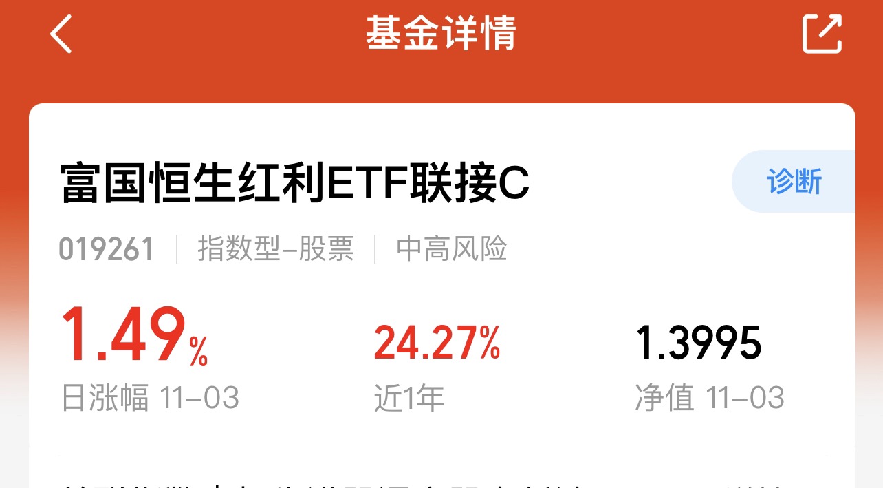 $富国恒生红利ETF联接C$ 这只真的是震荡市的压舱石,跟踪的指数专门挑高股息 + 低波动的港股,像移动、汇丰这些现金流巨头都在里面,政策加持下分红超稳。现在股息率直接飙升,是国债收益的好几倍,简直是现金牛本牛!