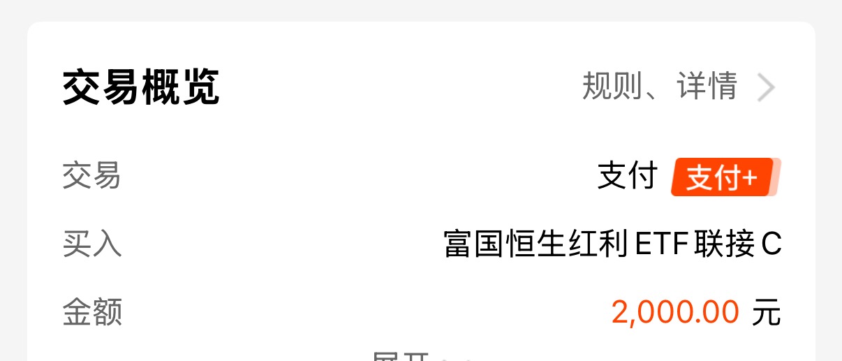 成长近期反弹比较多,所以回落的时候少不了防御考虑,目前我手上银行、红利等高股息资产也是开始布局,虽然我坚信AI科技即便短线压力不改长线格局,但稳妥一点,我依旧会选择增配点红利资产来做打底配置。毕竟稳健的现金流+确定性的高分红,年底资金获利了结以及美联储降息大势下,红利资产还是有很大优势的,我今天再加$富国恒生红利ETF联接C$ ,港股的红利估值更低,弹性也会更大一些,而且在降息趋势下,港股红利也会先受益,我继续定投起来。
