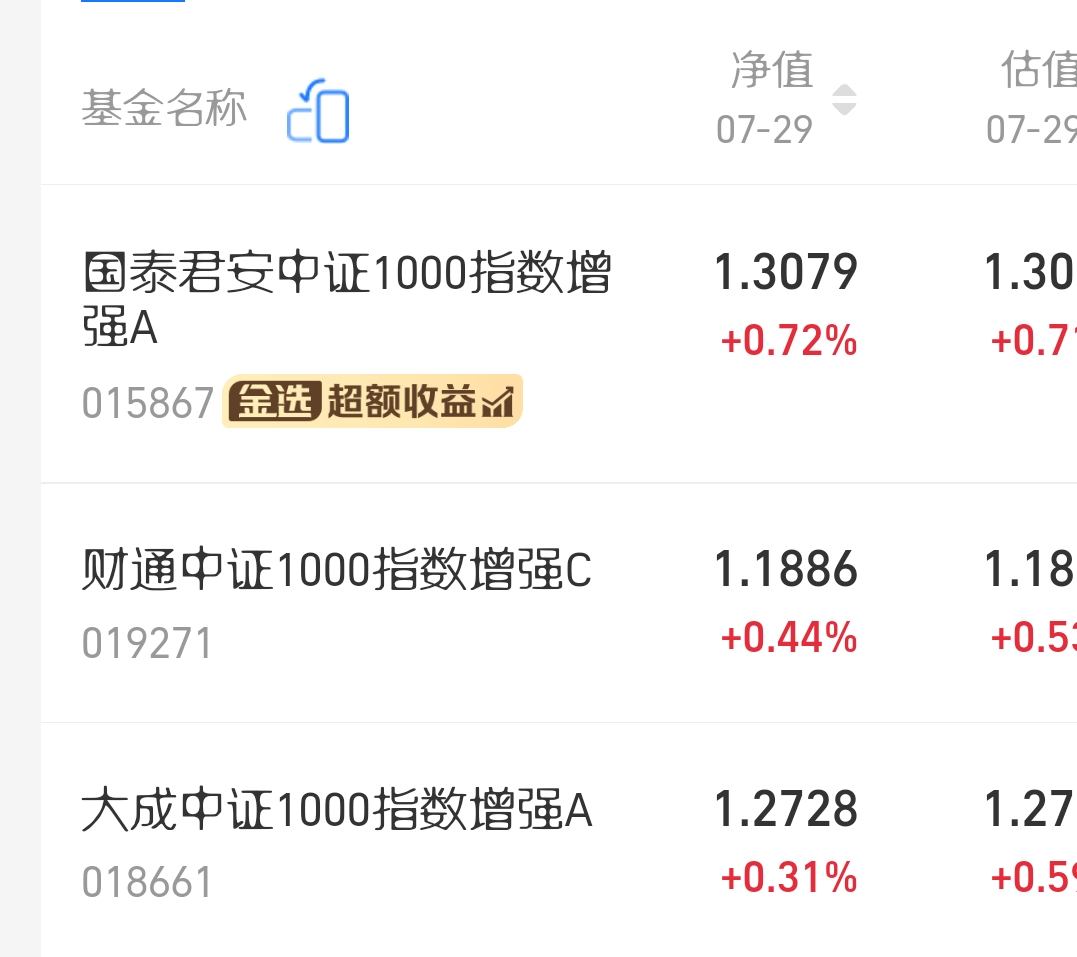$国泰君安中证1000指数增强A$ 涨了0.72%