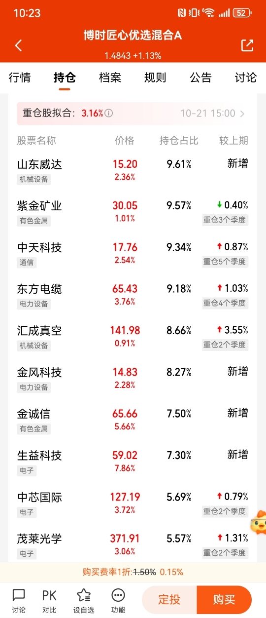 今天十大重仓股全是红的,怎么净值就涨1.18%?