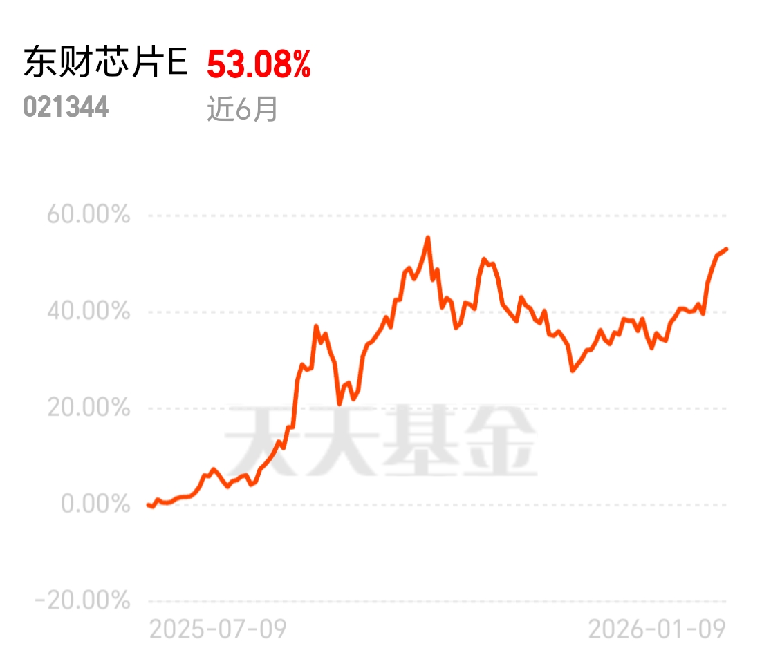 沪指都站上 4100 点了,赚钱效应直接拉满,芯片作为科技风口核心根本停不下来。东财芯片 E 近 6 月 53.08% 的涨幅太亮眼,现在不冲更待何时,梭哈了,还有一波!$东财芯片E$