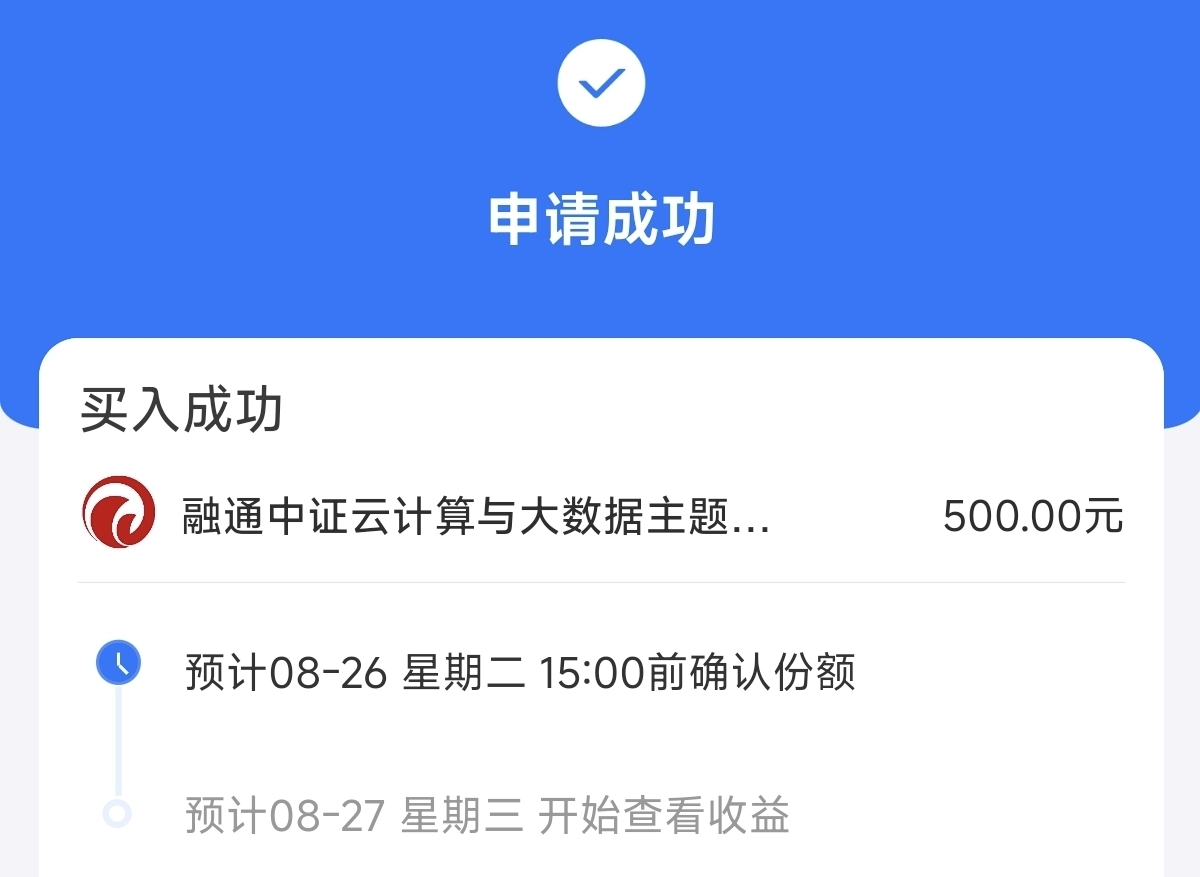 今天布局$融通中证云计算与大数据主题指数(LOF)C$ 500元。