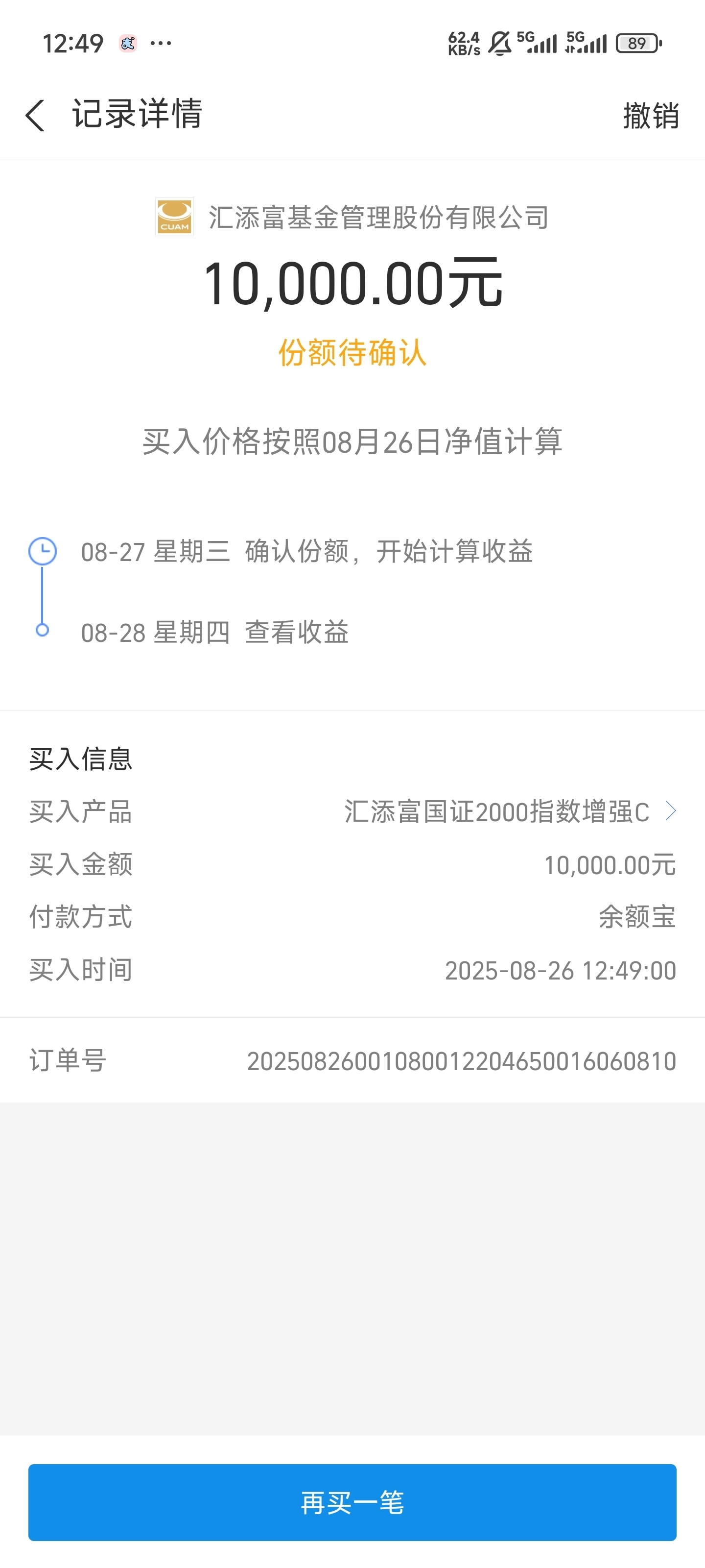 今天终于来了一波回调了,准备调整调整上3900了,牛市也不可能一直涨,今天下跌,也有超2000家个股上涨,盘中渐渐在走v了,开盘20分钟,成交量就已经破7500亿了,昨天小单就说了,量价齐升,问题不大,没什么事是钱不能解决的。所以小单继续上车$汇添富国证2000指数增强C$ ,