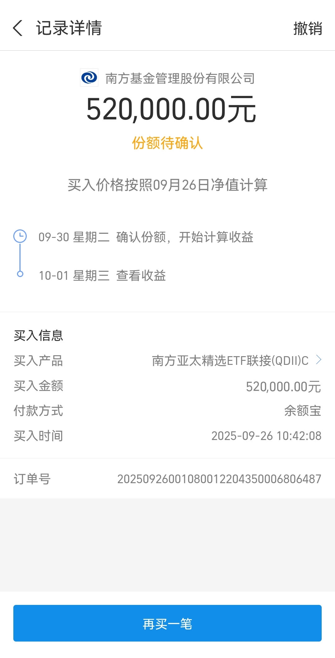 国庆期间,亚太精选成分股韩国、日本、澳大利亚等都不放假,亚太精选假期也有收益,今天提前买入一笔,先把假期收益拿到再说$南方亚太精选ETF联接(QDII)C$