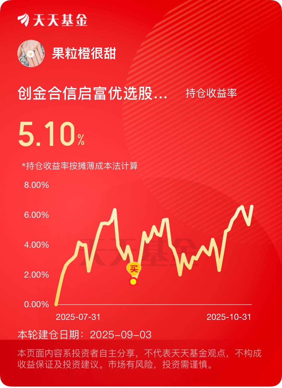 市场整体向上趋势还是很明显的,继续持有了$创金合信启富优选股票发起C$