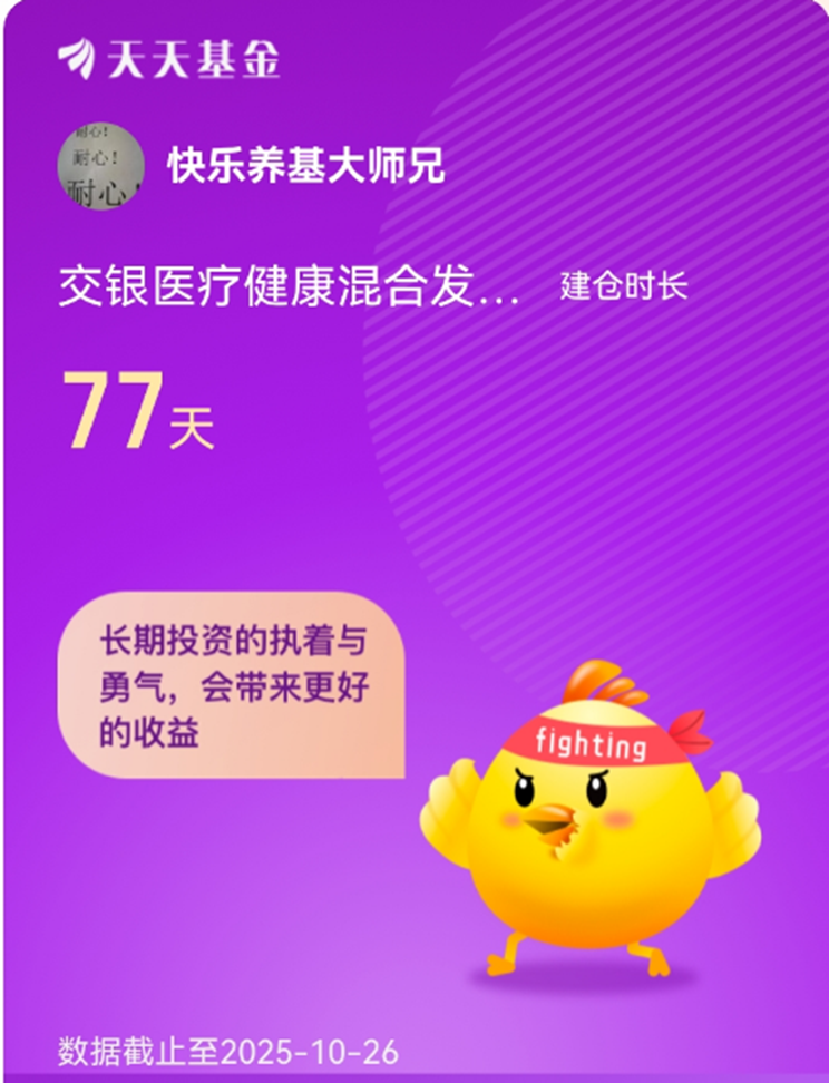 从最初建仓交银医疗健康混合发起式基金(019346)至今,不知不觉中,已过了77天。熟悉我的朋友都知道,我一直在逐步建仓这只基金。