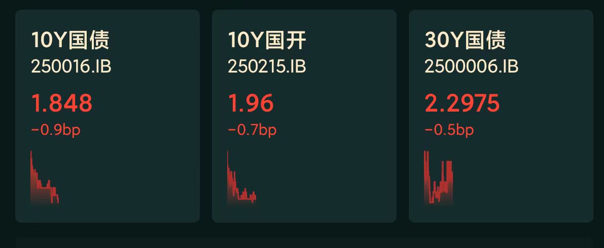 十年期国债收益率:1.848%,+0.5BP(国债收益率越跌,债市越涨)