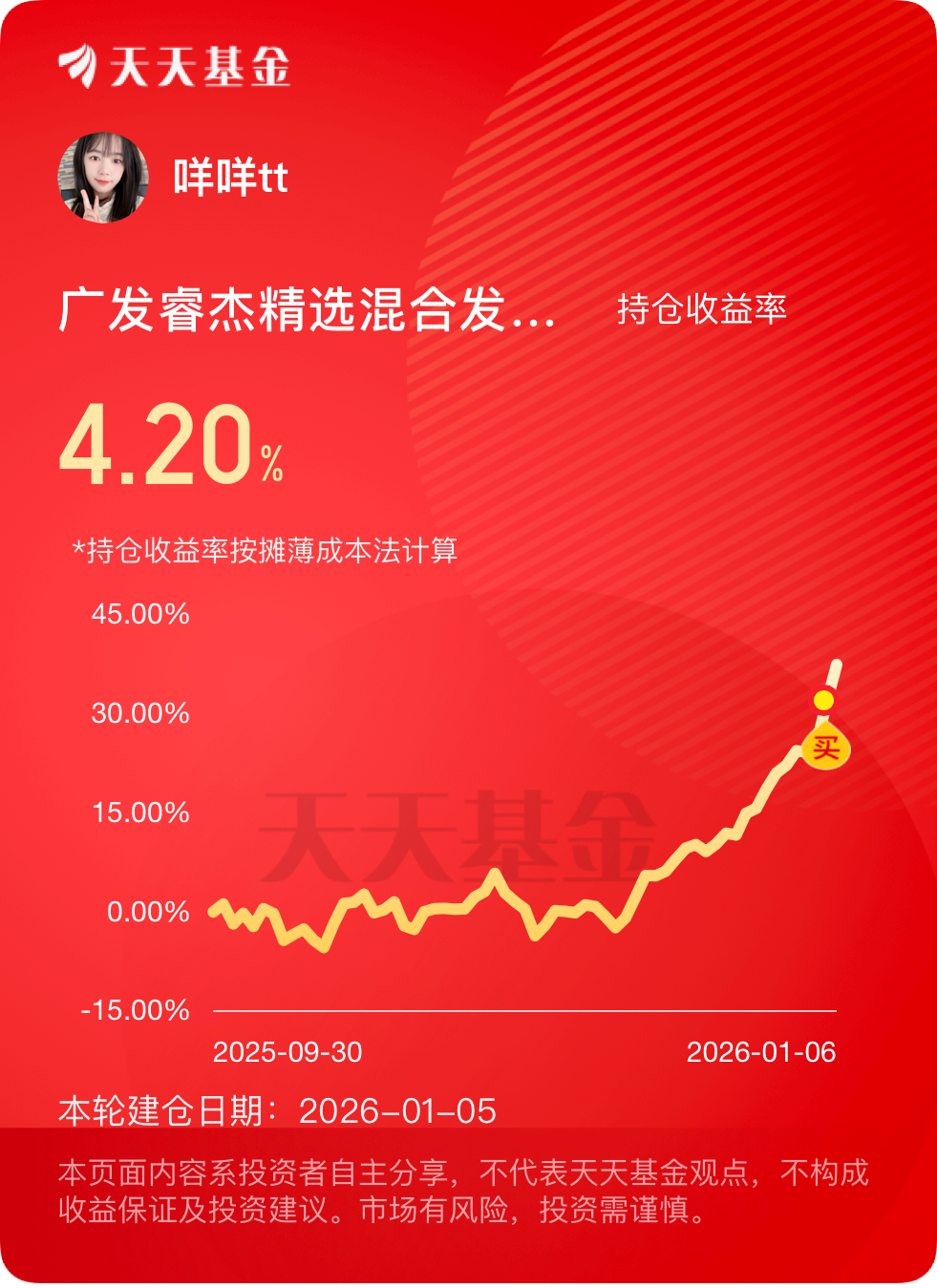 昨天上车,今天就z抓到4.36%的上涨!$广发睿杰精选混合发起式A1$是真有点东