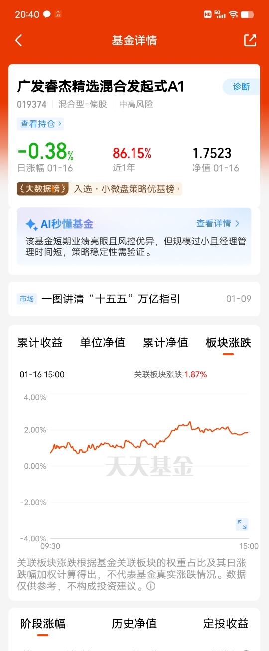 请问基金经理今天板块上涨1.87%,怎么变成负0.38%,能否解释一下