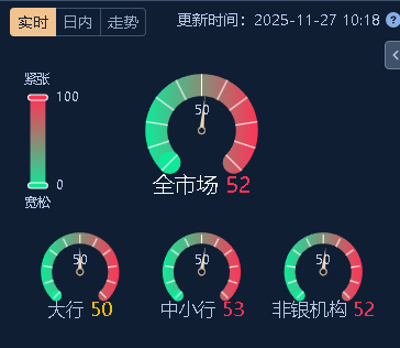 DR001报1.30%左右,DR007报1.41%左右,资金情绪均衡偏松(CNEX资金面情绪指数在52)