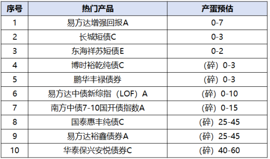热门产品产蛋预估:(根据16:00行情预测,仅供参考,以实际产蛋为准)