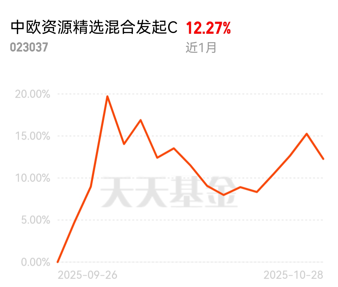 降息让有色金属融资成本降了,需求预期一好板块就反弹,国内反内也见了效。看中主动基金的超额收益,中欧资源精选混合C近1个月12.27%,持仓覆盖多类资源,领31.88元红包补仓。