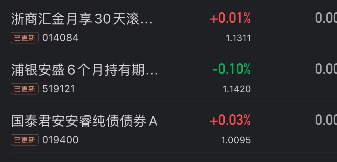 今天债市看着有点无聊,没什么惊喜,国泰的债基依然稳,适合慢慢持有。$浙商汇金月享
