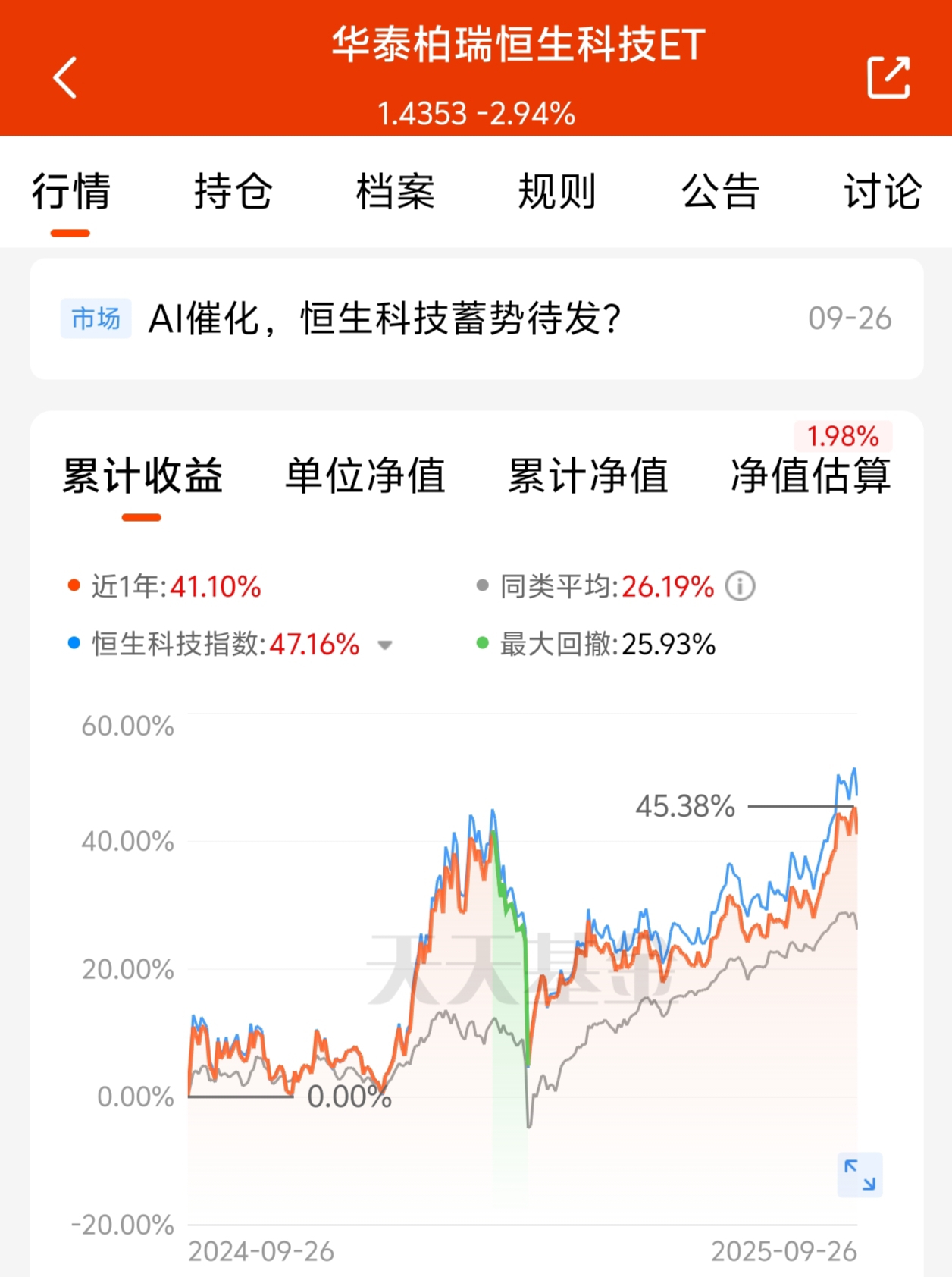 周五港股那波调整看得我心慌,但发现南下资金还在持续流入,心里踏实了点。我持有的$华泰柏瑞恒生科技ETF联接(QDII)C$ 近一年都涨41%了,长期拿着比较放心。