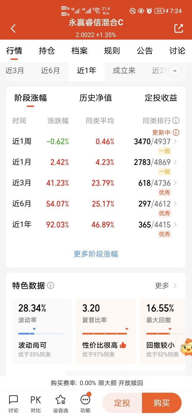 业绩优秀也给大家带来更多信心,$永赢睿信混合C$今晚涨幅1.35%,中长期表现会