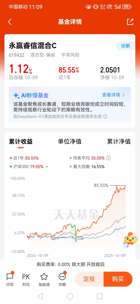 $永赢睿信混合C$ 这只基金在均衡型配置方面表现得堪称完美。基金经理高楠哥通过多元投资,将资金分散到不同行业中,降低了投资风险。而且,该基金的风险分散,收益也比较稳定,适合长期持有;昨日更是大涨+1.12%,近一年涨幅85.55%。#人工智能怎么投#