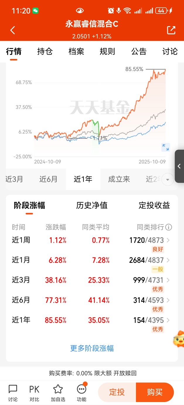 $永赢睿信混合C$修复起来够猛呀,昨天涨幅+1.12%,其它各阶段业绩也不错呢,