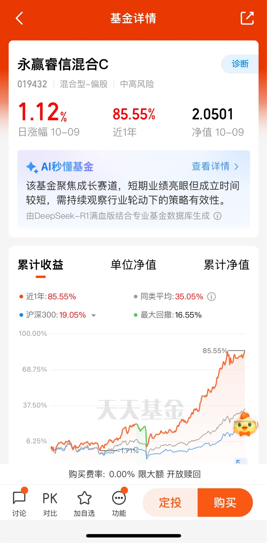 $永赢睿信混合C$ 昨天收1.12%,近一个月收6.28%,近3个月收38.16%,近6个月收77.31%,表现优秀!覆盖汽车、轻工制造、医药、科技等多个领域,通过分散投资降低单一行业风险,大趋势持续反弹,基本面预期或反转的板块,值得重点关注,超高弹性!