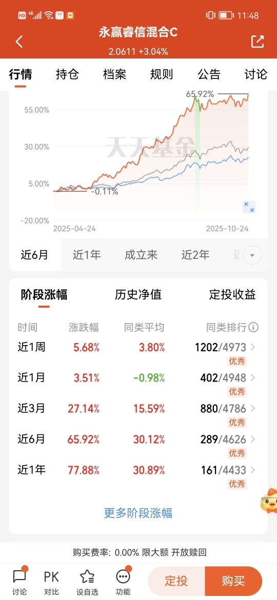 $永赢睿信混合C$ 均衡配置高景气度成长领域的医药,科技,新能源三大主流赛道,精准捕捉市场中的机遇红利。上周五上涨3.04%,近三个月涨27.14%,近一年77.88%的涨幅,业绩很不错的。永赢睿信凭借灵活的投资策略和优秀的风控能力,后市值得期待。#10月基金投资策略#