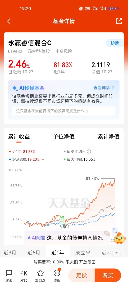 A股周一开门红,今天行情继续发力,上证指数马上就上冲到4000点了,永赢睿信混合019432今天净值又大涨2.46%,业绩非常优秀,准备发工资上车,这一波回暖上升行情一定要把握住,等着上涨吃肉了。