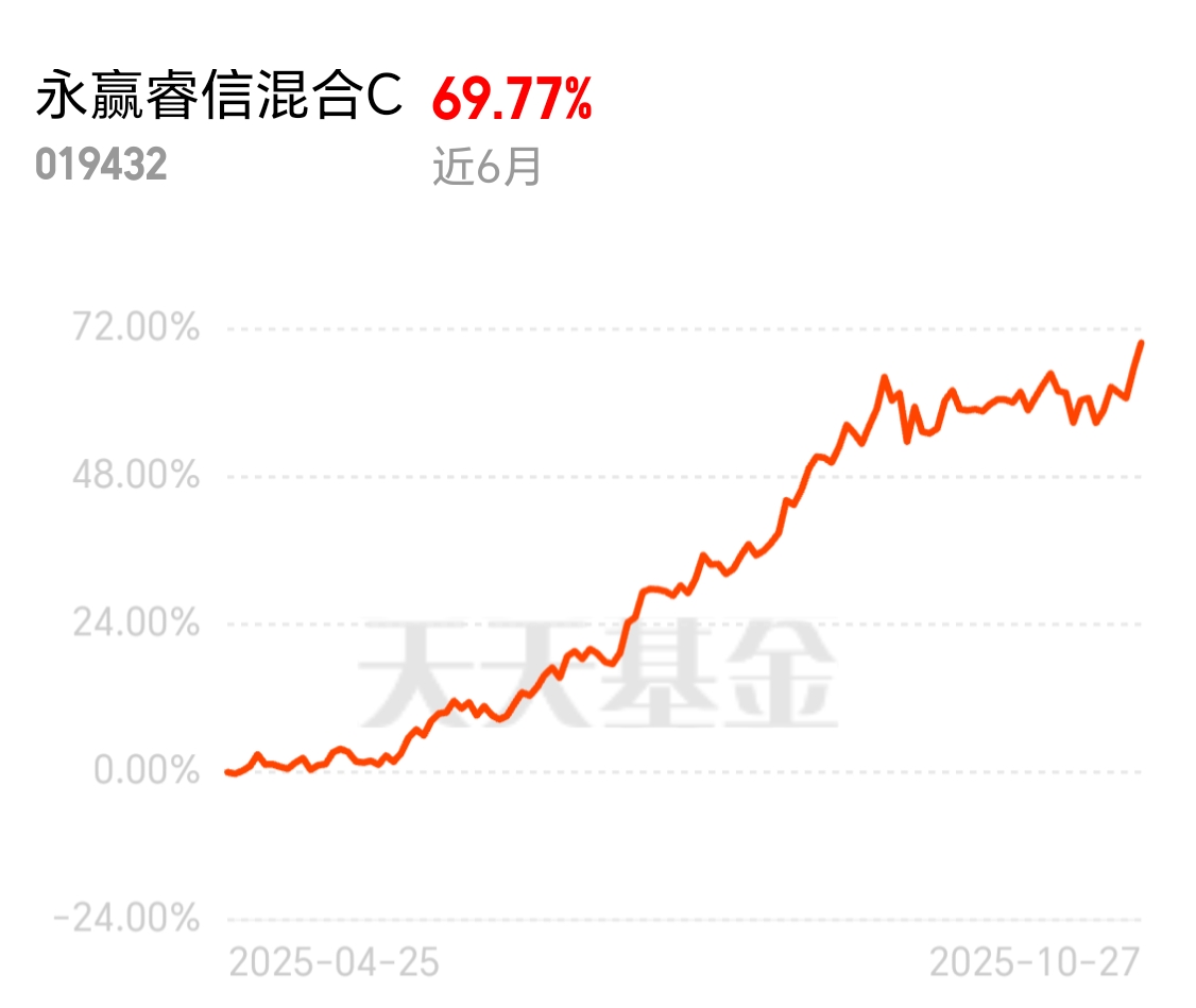 $永赢睿信混合C$ 专注于AI、创新药、新消费等高景气赛道,今天上涨2.46%,连涨二天,涨超5%,看历史业绩,近一周涨6.92%,近三个月涨31.47%,近六个月涨69.77%,目前看走势良好准备配置起来。$永赢睿信混合C$
