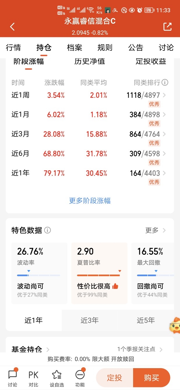 市场板块轮动太快,很难把握。多板块布局均衡配置的$永赢睿信混合C$ 实力很强业绩惊艳!主要配置医疗,科技,消费,新能源,周期等。降低单一赛道风险,多板块捕捉市场机遇,力争业绩最大化。不但能够适应A股市场宽幅震荡特征,而且历史业绩在不同市场环境下均表现稳健。从近一周到近一年,所有阶段排名都很优秀,最近一年的涨幅超过79个点,是同类均值的两倍还要多。#慢慢投基路 你悟出了哪些投资哲学?#