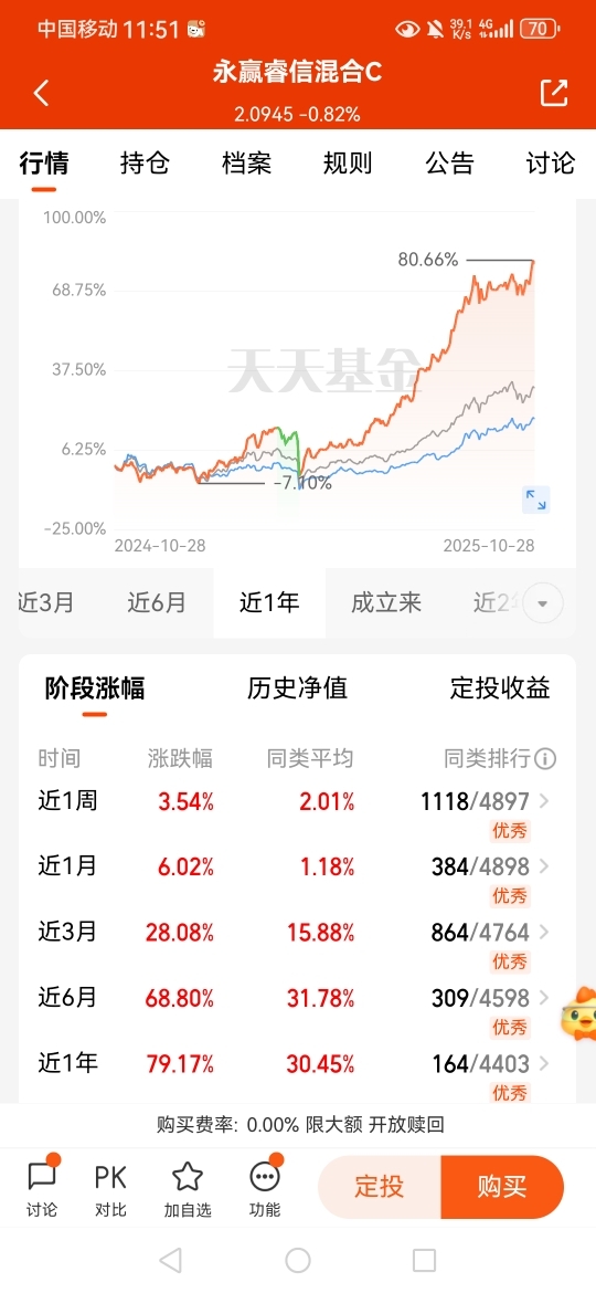 $永赢睿信混合C$ 这只基金在均衡型配置方面表现得堪称完美。基金经理高楠哥通过多元投资,将资金分散到不同行业中,降低了投资风险。而且,该基金的风险分散,收益也比较稳定,适合长期持有,近半年涨幅+68.80%,近一年涨幅79.17%。#OpenAI联手博通!AI产业链怎么投?#