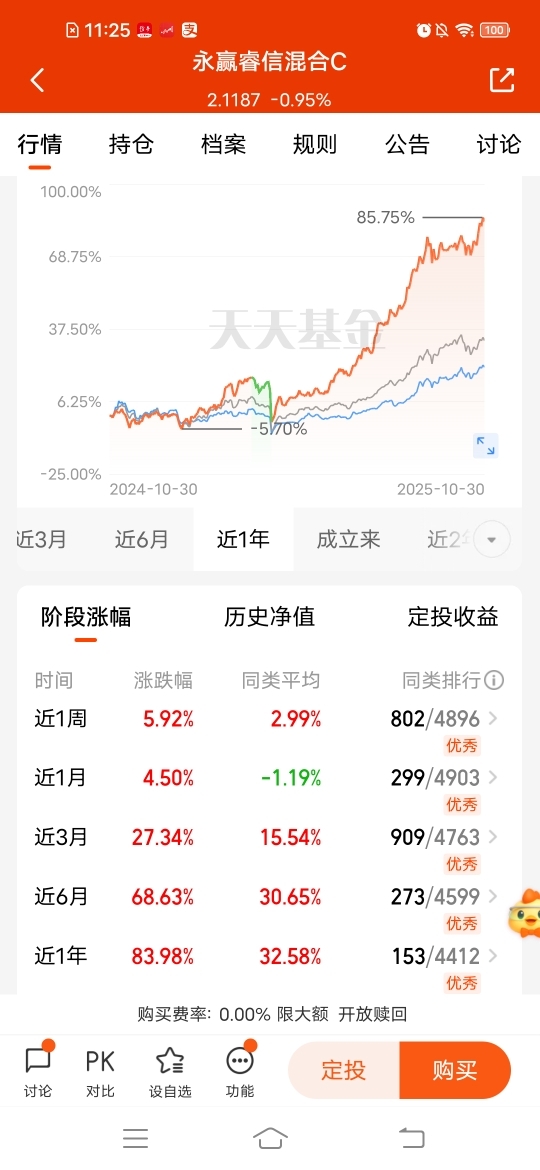 $永赢睿信混合C$ 收集点筹码更有动力,整体以稳健为核心思路,近一周涨幅5.92%,近三个月涨幅27.34%,近六个月涨幅68.63%,近一年涨幅83.98%,各个阶段业绩稳定,基本面预期或反转的板块,值得重点关注,超高弹性,提前布局更有优势,中长期潜力赛道。
