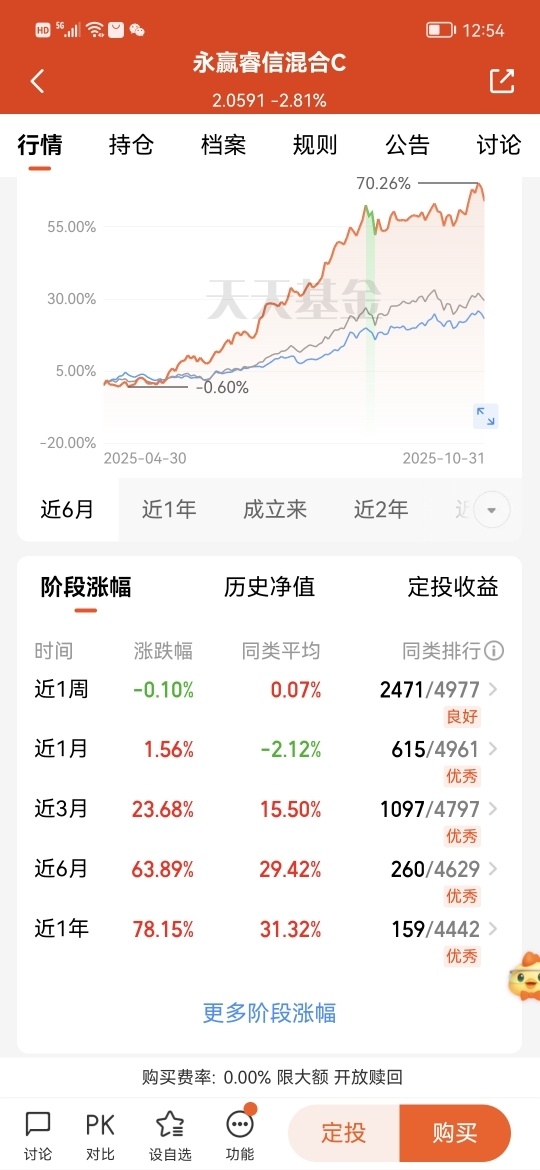 $永赢睿信混合C$ 均衡配置汽车,制造,创新医药,科技等高景气赛道。近一个月涨1.56%,近三个月涨23.68%,近六个月涨63.89%,近一年78.15%的涨幅,各阶段表现均很优秀。基金经理高楠投资策略灵活、风控能力优秀,后市值得继续期待。#飞天茅台批发价跌破1700!酒价何时触底?#