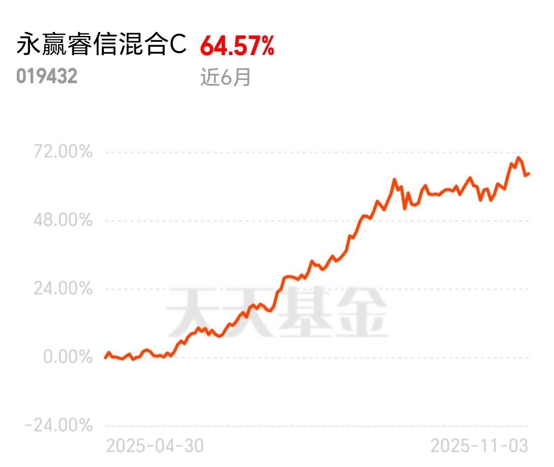 $永赢睿信混合C$ 通信(12.36%)、有色金属(9.89%)、电子(5.99%)多赛道布局,捕捉科技周期与资源品机会。前十大重仓股占比42.54%,个股配置相对均衡,避免单一标的风险过度暴露。今天涨0.42%,近三月涨超25%,近半年涨超64%,目前看走势良好,准备配置起来。$永赢睿信混合C$